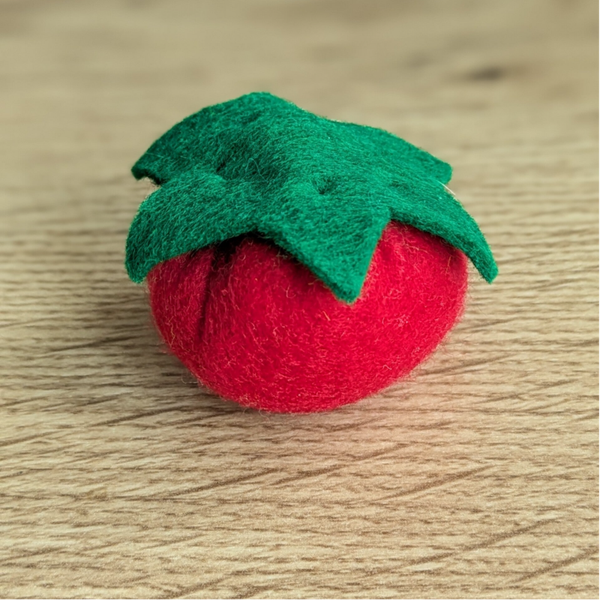 Ein Filz-Tomate als Spielzeug ist eine weiche Nachbildung des Gemüses, perfekt für die Kinderküche oder den Kaufladen.